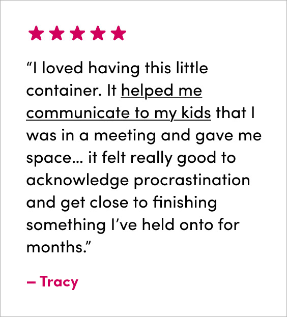 You become a woman who can come back to center quickly even when life is lifey. Measurable: a 5-minute reset 5x/week (or a 2-minute daily reset).